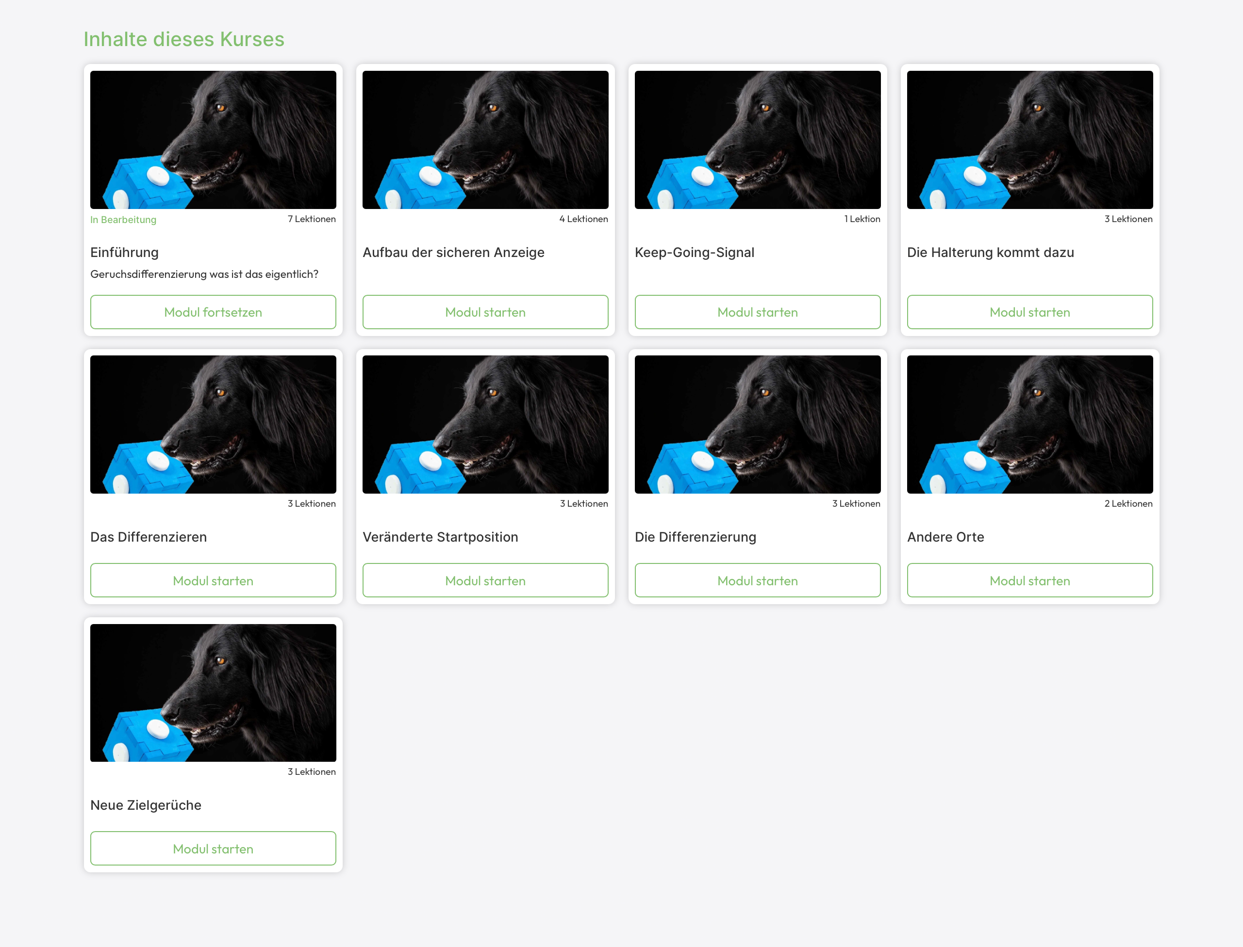 - nach dem Kurs kannst du deinem Hund beibringen unterschiedliche Gerüche zu finden und anzuzeigen